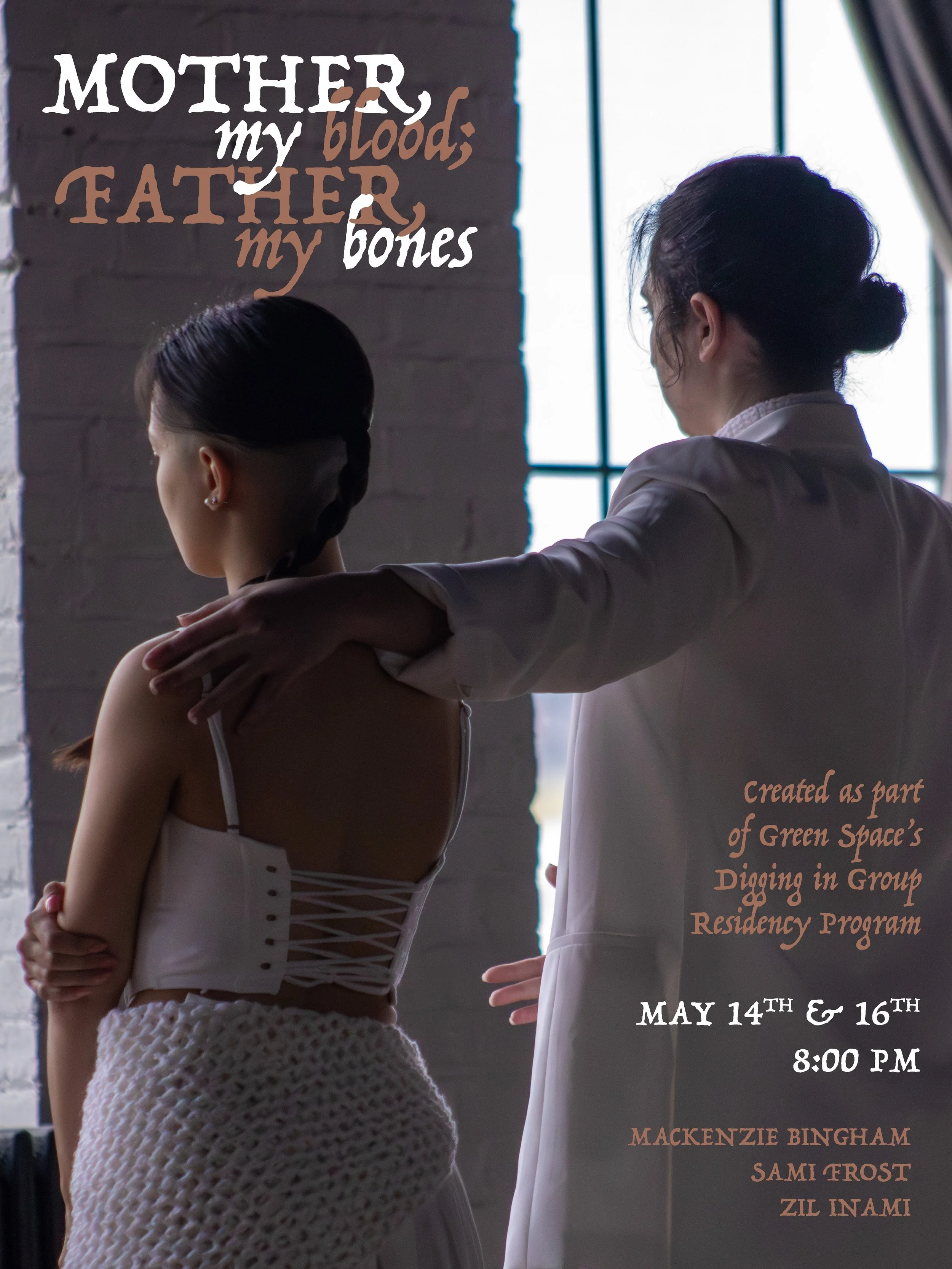 ‘mother, my blood; father, my bones’ follows the cyclical and, oftentimes, unstable nature of hegemonic, patriarchal familial dynamics and the impact they can have on those who undergo primary socialization within this structure. As those children grow to the age where they must both reckon with their parents as humans (in the same way in which they, themselves, are humans) and begin to establish themselves as individuals outside of their family unit, how can the deconstruction of a once sanitized view of their parents’ relationship bring both their childhood memories and own relational propensities into new light? How will this impact how they decide to construct their individualized self?